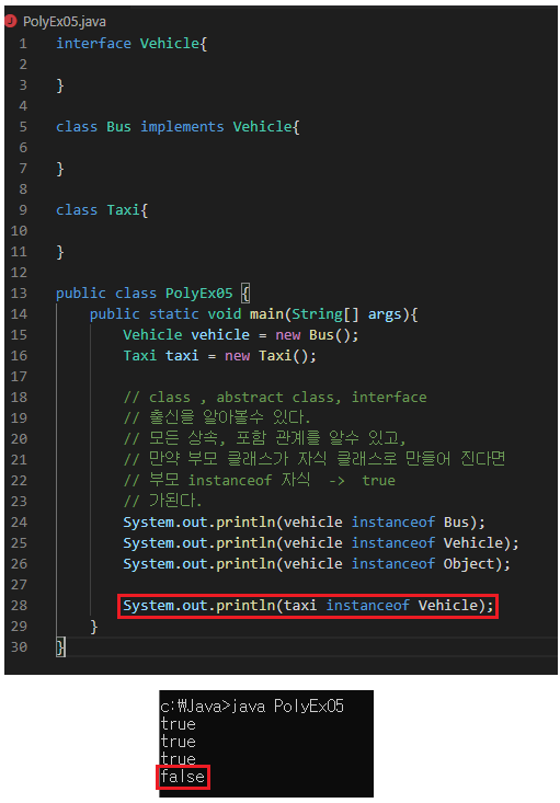 - 특정 자식을 통해서 만들어진 부모는 그 자식으로만 강제 형변환 될수 있다.