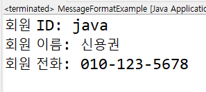 String text = "회원 ID: {0} \n회원 이름: {1} \n회원 전화: {2}";