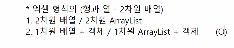 1. 2차원 배열 (1차원 ArrayList + 객체)