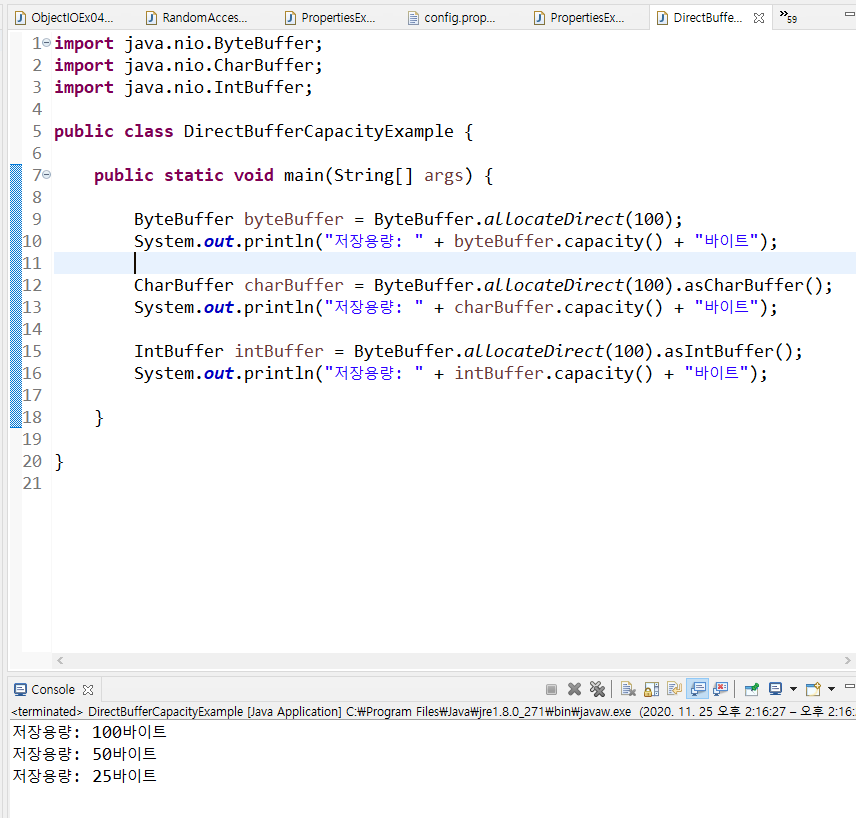 11/25 - Java(12) : BufferedReader와 Scanner, IO(DataInput(Output)Stream, ObjectInput(Output)Stream, RandomAccessFile, Properties), NIO(Buffer, FileChannel) 본문