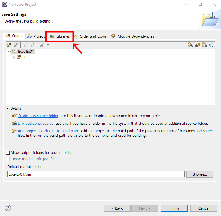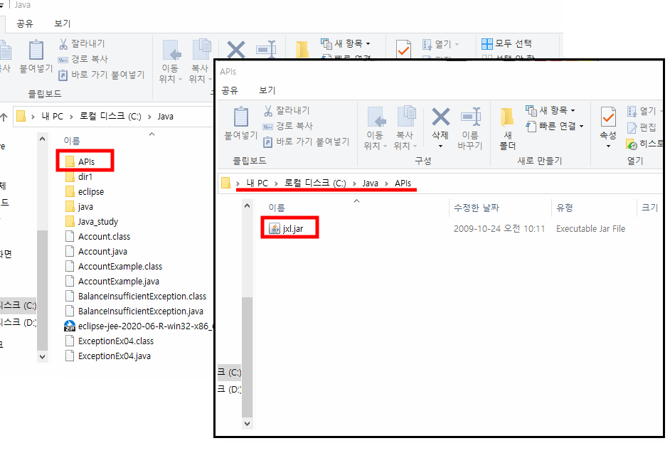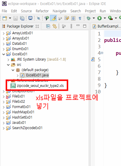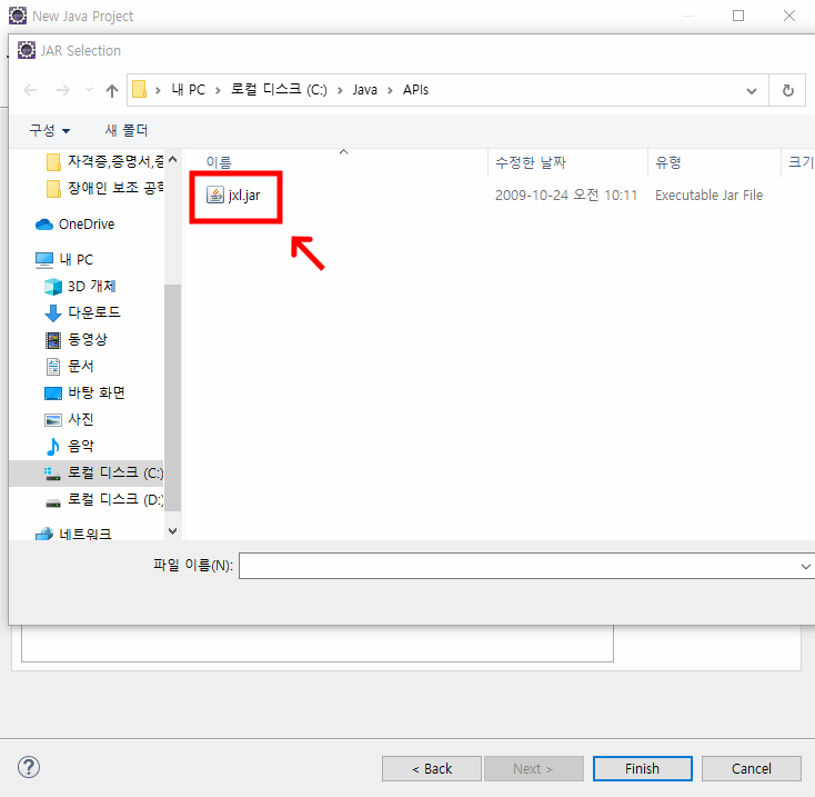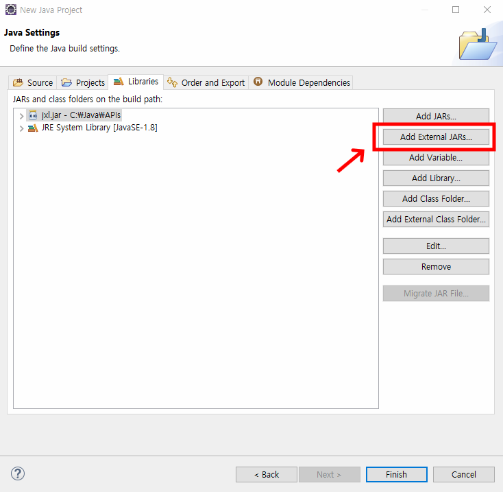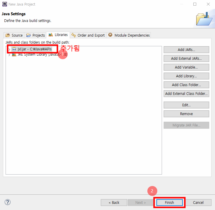프로젝트를 만들 때 jxl.jar를 추가한다.