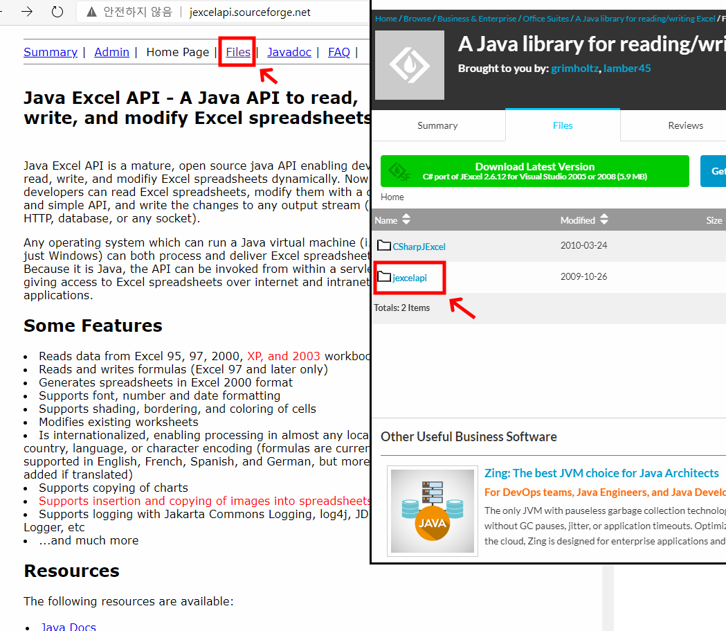JExcelApi (sourceforge.net) -> 여기서 다운 jxl. jar 다운 가능 excel