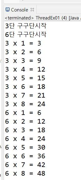 아래 사진은 순차 스레드의 실행결과를 보여준다.