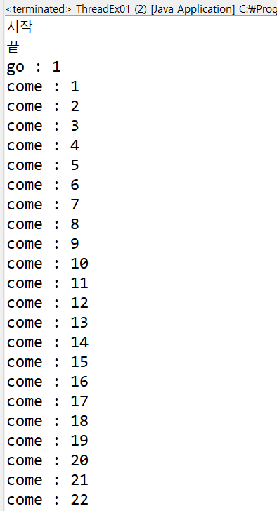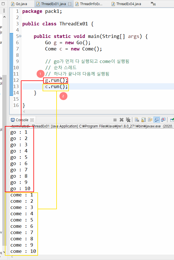 go.run()이 실행되어 끝난 후에아 come.run()이 실행된다.