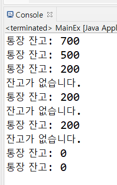 통장잔고가 없으면 다음에 잔고가 출력되면 안되는데 출력이 된다.