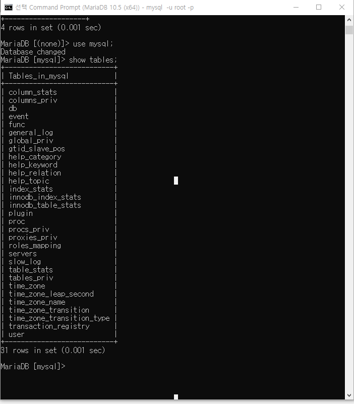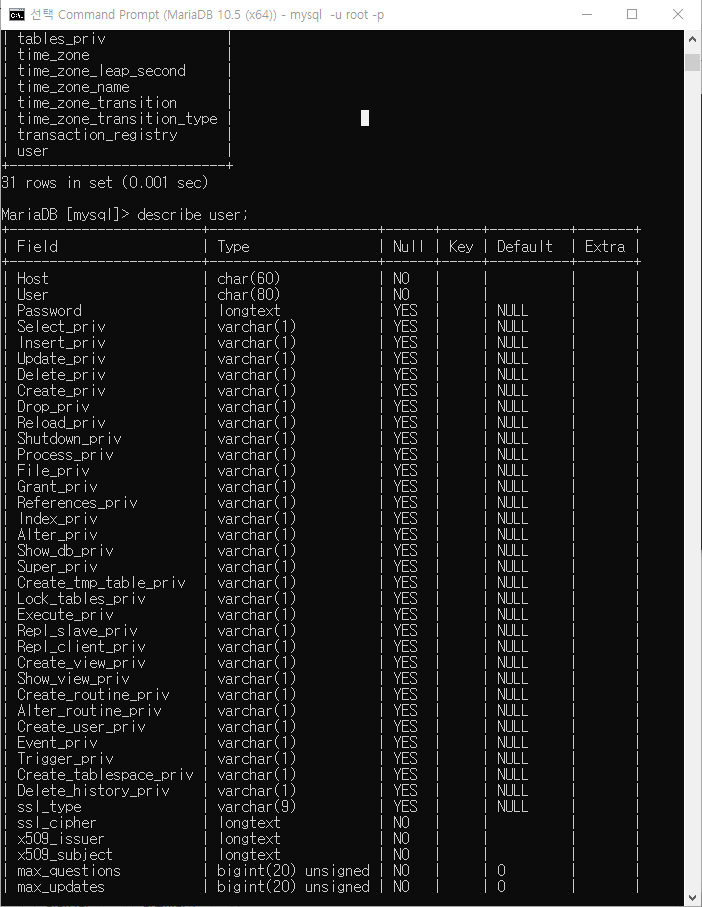 (4) 테이블에 대한 규정/구조 (스키마) 보기 명령어