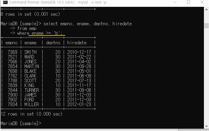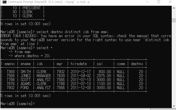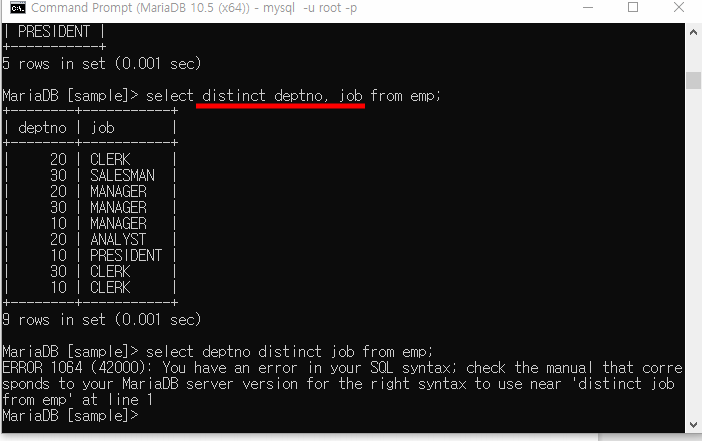 11/27 - SQL(1) : Maria DB , SELECT, FROM, WHERE, DISTINCT 본문