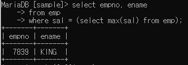 > all (서브쿼리) - 서브쿼리에 나온것 중 최댓값 보다 큰