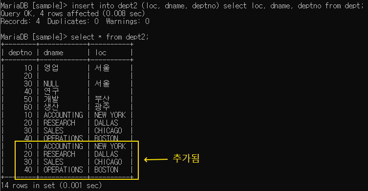 서브쿼리 사용해서 다른 테이블의 레코드 가져와서 넣기