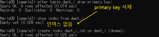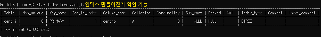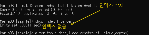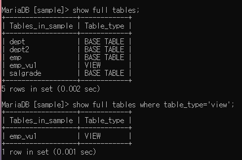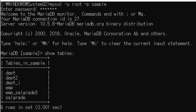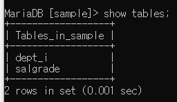 덤프파일을 가져와서 백업하고 다시 sample에 들어가서 테이블 리스트를 확인하면