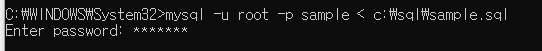 mysql -u root -p sample < c:\sql\salgrade.sql