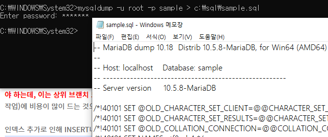 mysqldump -u root -p sample > c:\sql\sample.sql