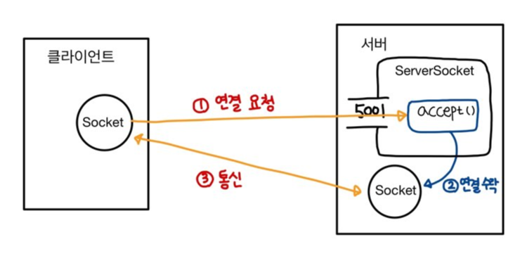 - Socket : 연결된 클라이언트와 통신을 담당하는 것
