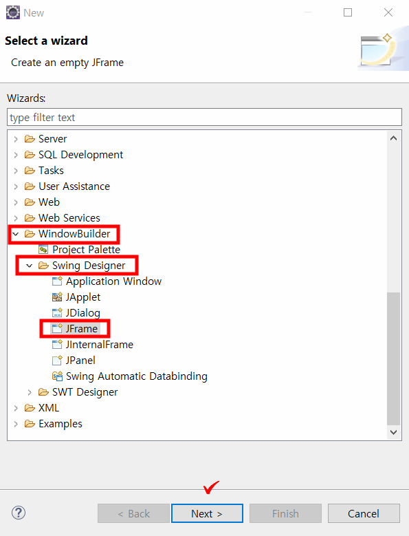 1) 클래스만들때 superclass로 JFrame넣어주기 (* 이걸많이씀)