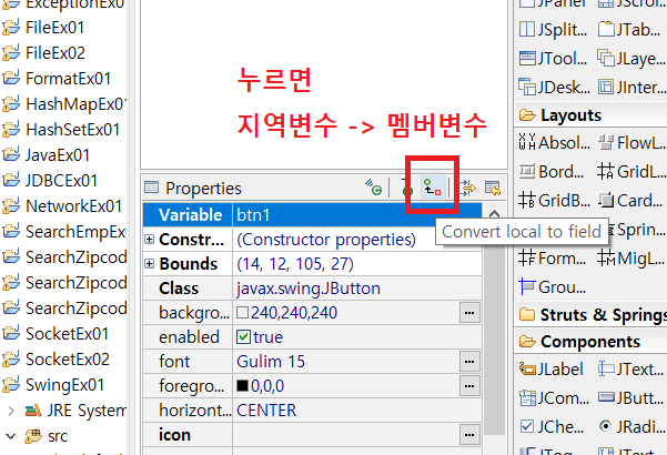 Swing에선 null 레이아웃도 있다. 좌표랑 크기로 찍어주는거.