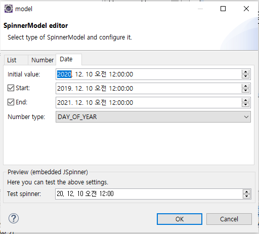 새로운 클래스 만들때 spinnerListModel을 superclass로 추가 필수