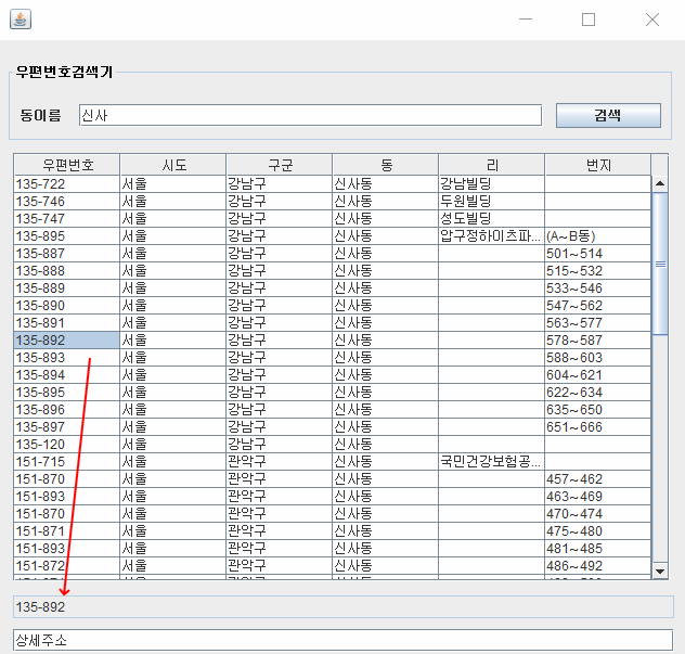 - '검색' 버튼을 누르면 주소테이블이 쫘라락