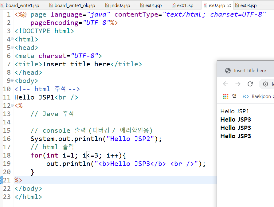 JSP는 Java와 다르지 않다. Java를 출력하는데 html에 담아서 출력하는 거라고 보면된다.