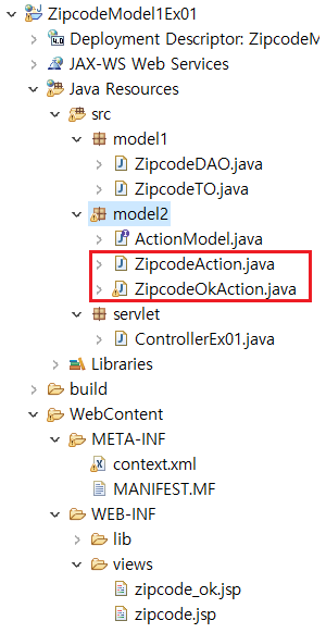 (6) ok.jsp 페이지에서 dao호출하는 부분을 action페이지에 넘긴다.