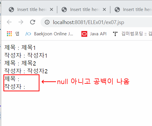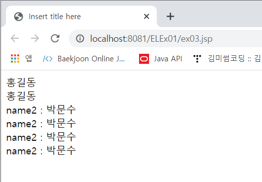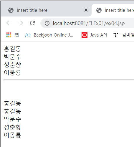 이렇게 html사이에 java 코드를 넣지 않고 표현언어를 써서 구현할 수 있다.