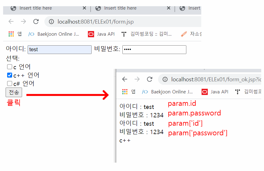 이렇게 html사이에 java 코드를 넣지 않고 표현언어를 써서 구현할 수 있다.