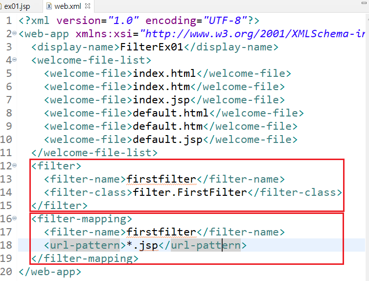 form.jsp에서 입력받은 값 검사를 form_ok.jsp 가 아닌 filter가 진행하는 식으로 한다.기존에 다국어 처리를 위해서 form_ok.jsp 에서 pageEncoding="utf8"을 해줬는데 filter에서 이걸 처리하게 해서 pageEncoding="utf-8"을 써주지 않아도 되도록 한다.또한, 데이터가 입력됐으면 form_ok.jsp로 입력되지 않았으면 다른페이지로 이동하게 filter에서 처리해주도록 한다.