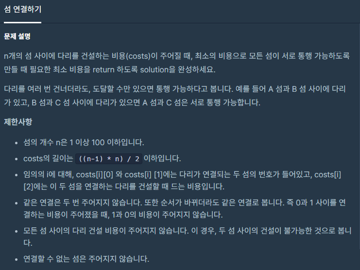 [C++] 프로그래머스 : 섬 연결하기 본문