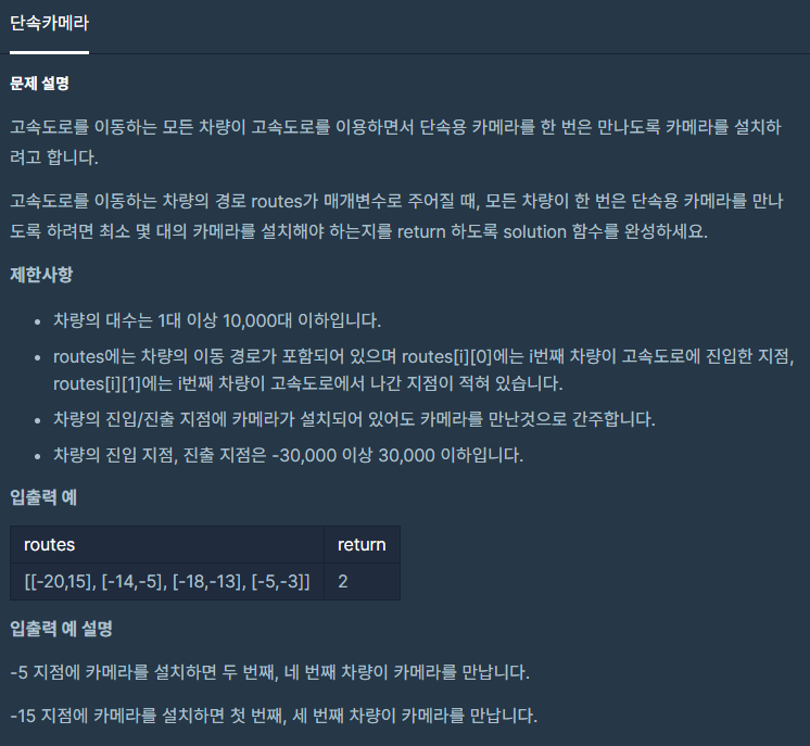 if(tmp > routes[i][1]) tmp = routes[i][1];
