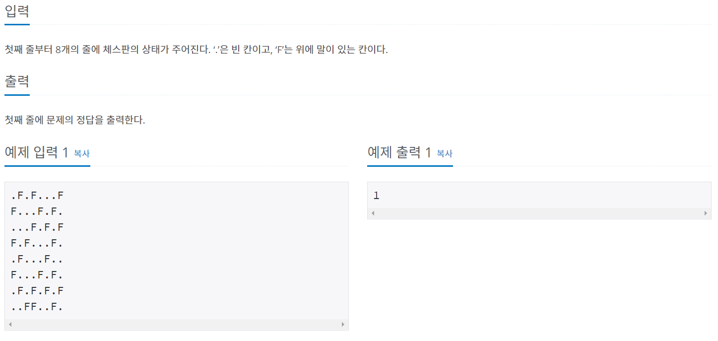 가로세로 8칸이 주어졌기 때문에 vector를 사용해도 되지만 배열을 사용하여 쉽게 해결 가능하다.