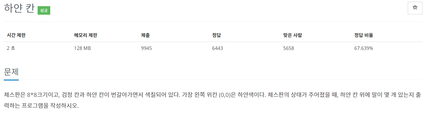 흰칸의 가로,세로 인덱스의 합을 2로 나누면 나머지가0이라는 것을 이용하면 조건문 작성이 쉽다.