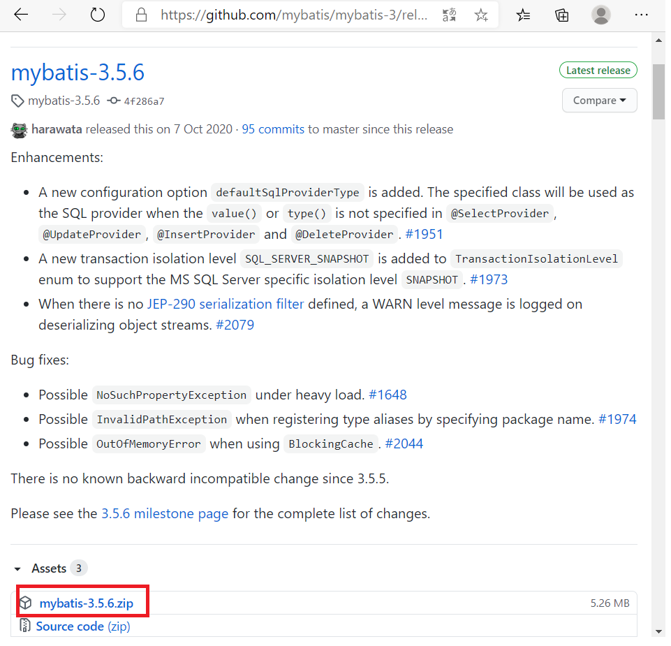 위의 MyBatis 3 의 download를 클릭한다.