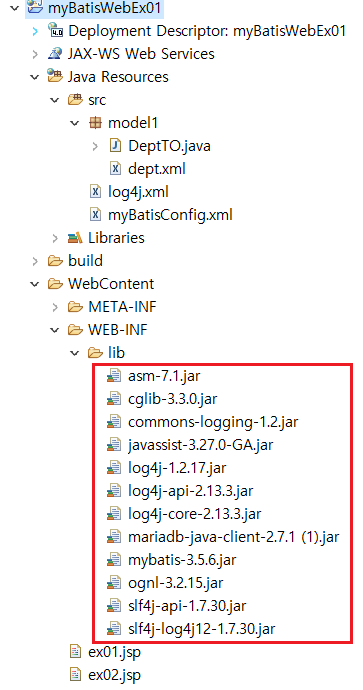 Java Project에서 myBatis를 구현한 것을 JSP에 옮기는 작업을 해야한다.