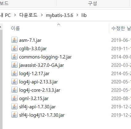 파일 압축을 풀면 많은 jar파일이 나온다.