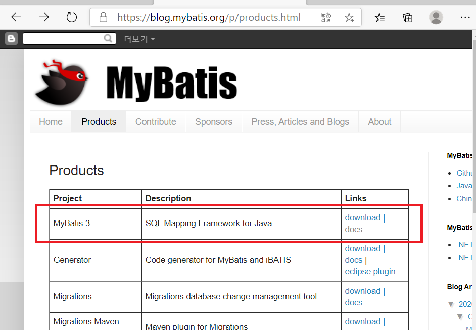 http://blog.mybatis.org 에 접속한다.