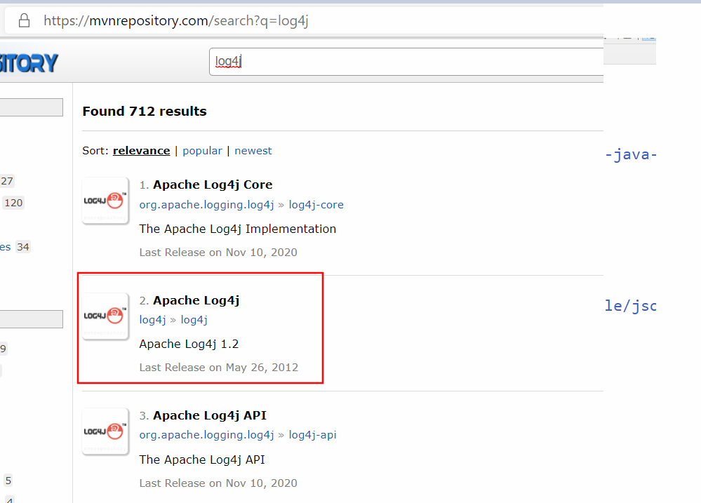 log4j를 검색해서 가져온 후 pom.xml에 추가하여 라이브러리를 자동 다운로드 받는다.