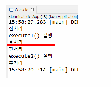 <!-- basicAdivce1 클래스를 통해서 execute()의 전처리 후처리를 logAround()로 가동 시켜줘! -->