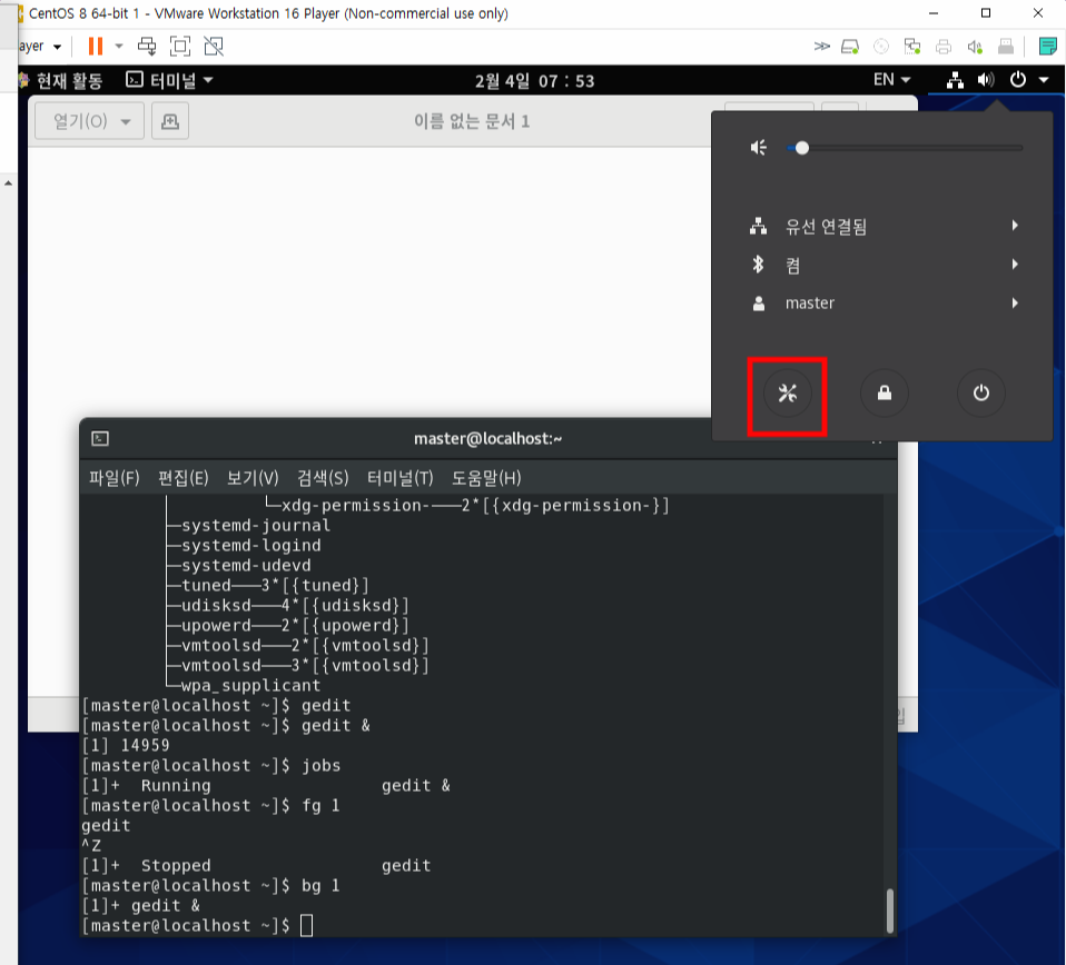 만약 gedit을 실행시켰을 때와 껐을때 확인해보면 다음과 같이 나온다.