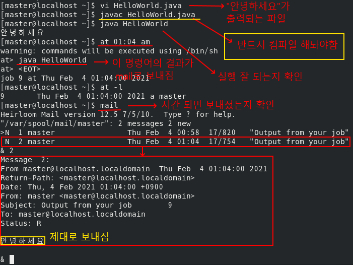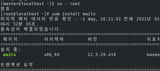 여기서 root 창에서 1을 입력하면 master가 보낸 메일 내용을 확인 가능하다.