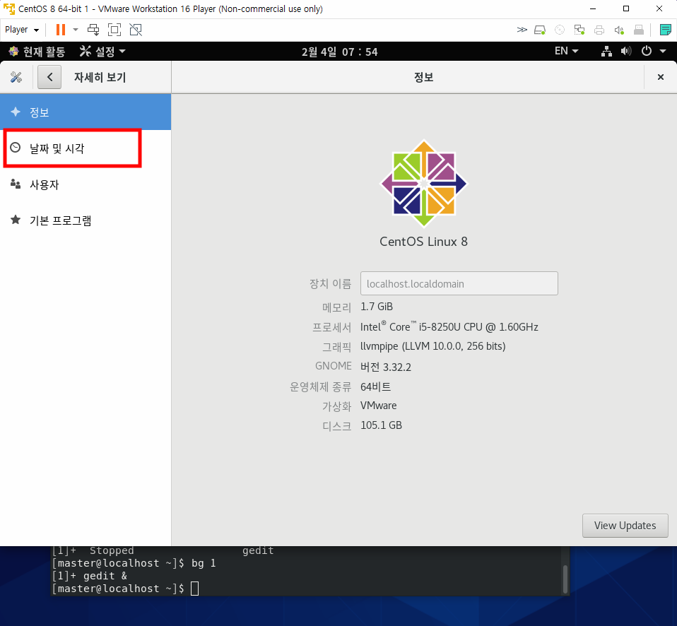 가장 먼저 표준시로 맞춰져 있는 시간을 지금 현재 내 시간과 맞게 맞춰준다.