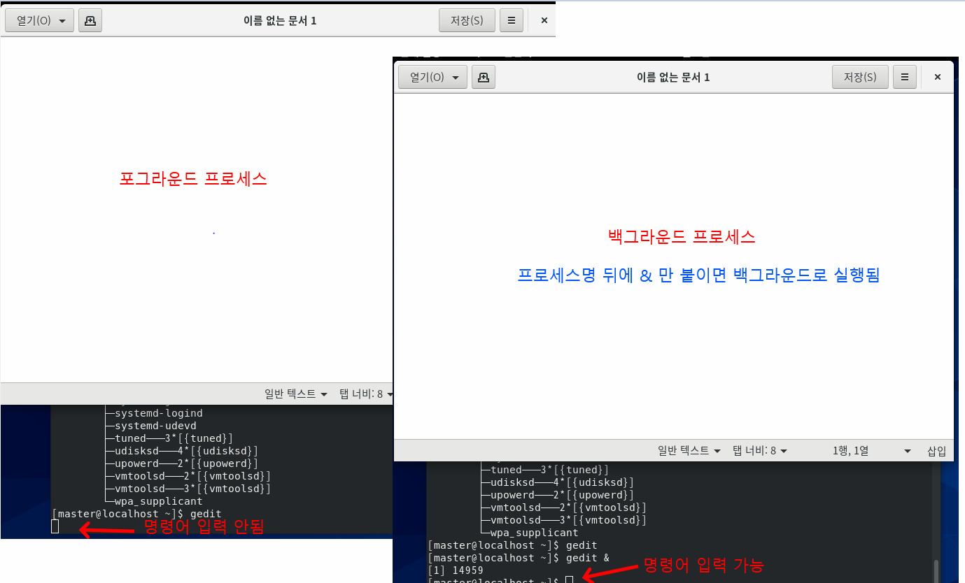 포그라운드 프로세스 : 실행시 다른 명령어입력 못함