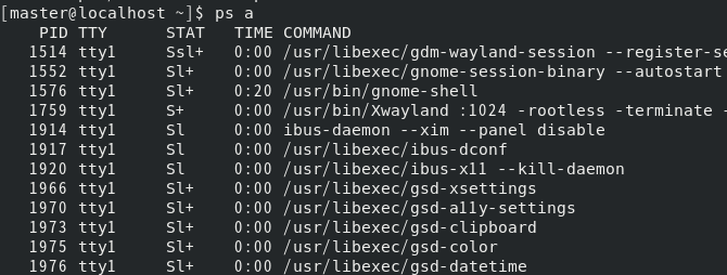 ps a : 프로세스의 현재 터미널의 정보를 모두 보여준다.