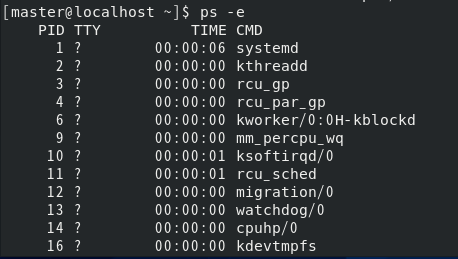 ps -e : 실행중인 프로세스를 모두 보여줌 (ps a와 비슷하지만 다른 종류의 - 가 붙는 옵션임)
