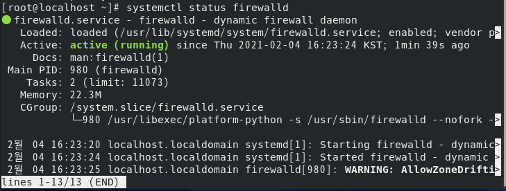 방화벽이 돌아가고 있는걸 확인할 수 있다.