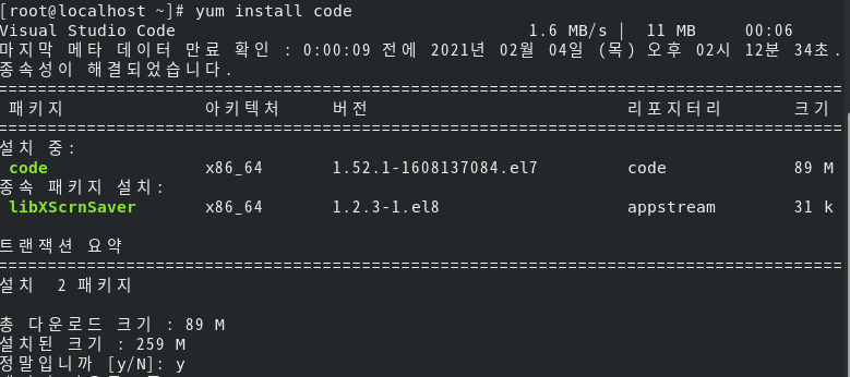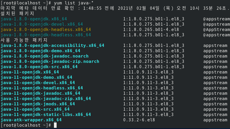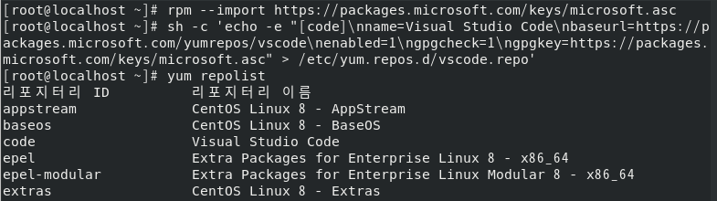 설치한 리포지터리도 목록에 추가되어 있음을 확인가능