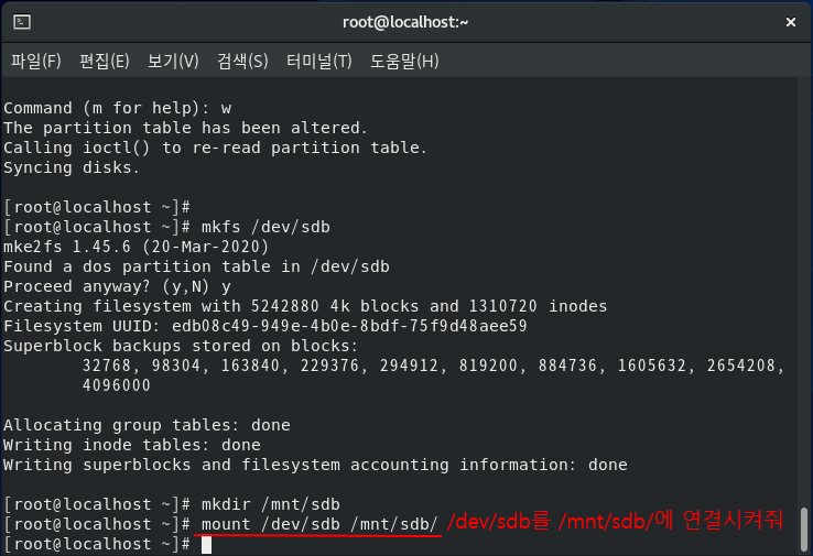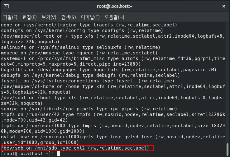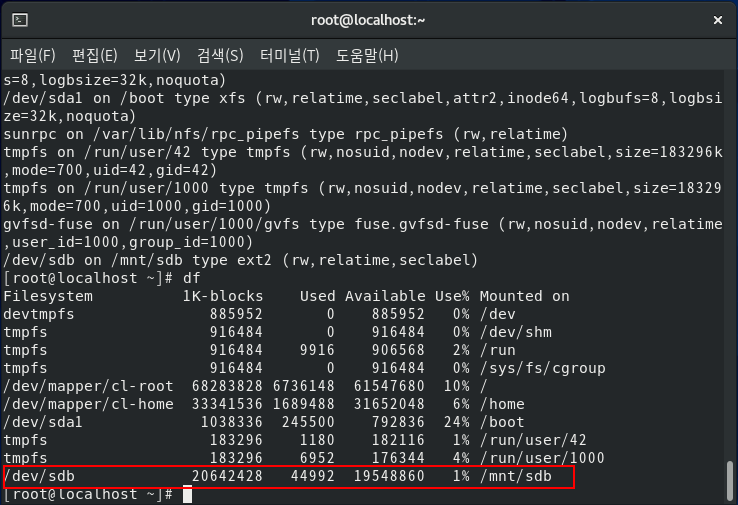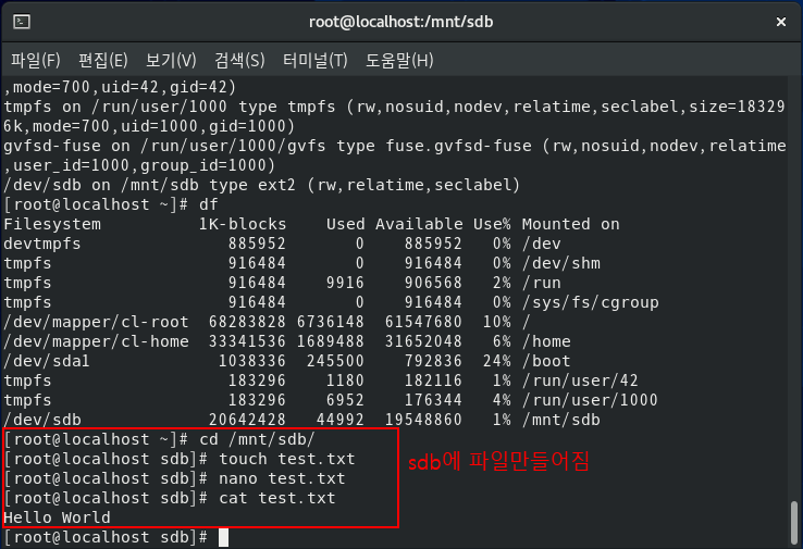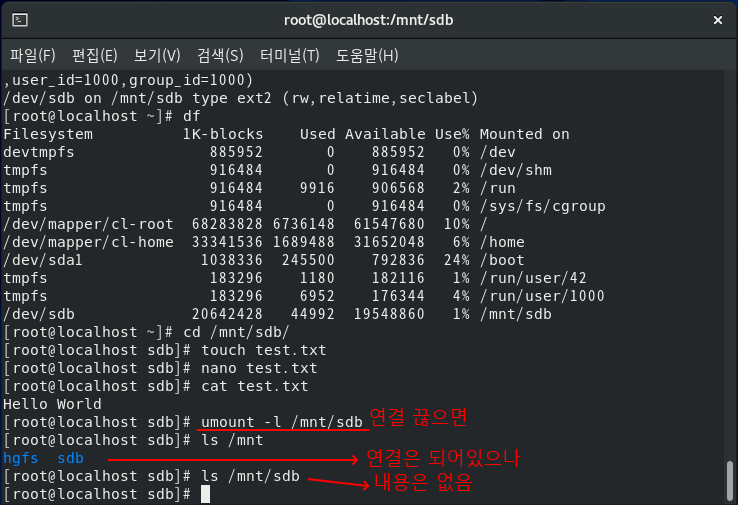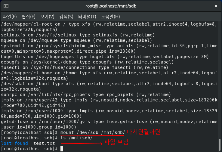 하드디스크 -> /mnt/sdb /dev/sdb(실질적인 디바이스)