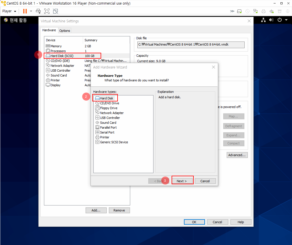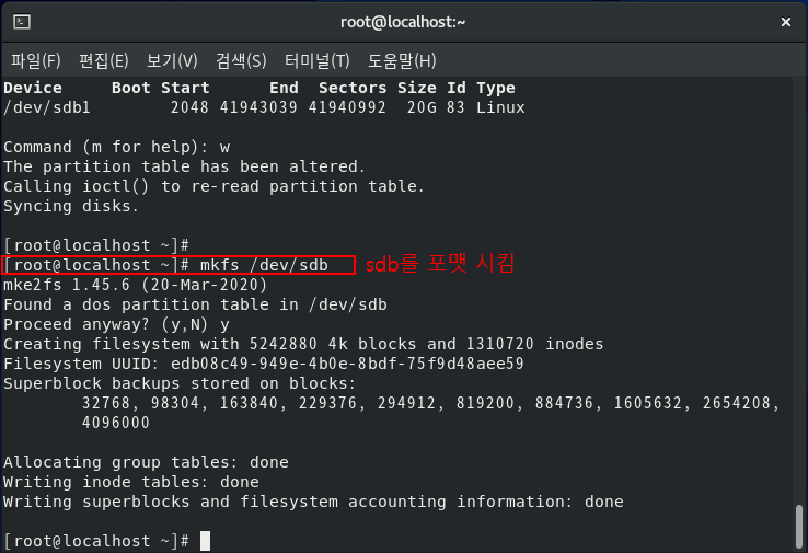 하드디스크 만들어서 파티션을 나눠주고 파티션에 해당하는 포맷을 해준다.