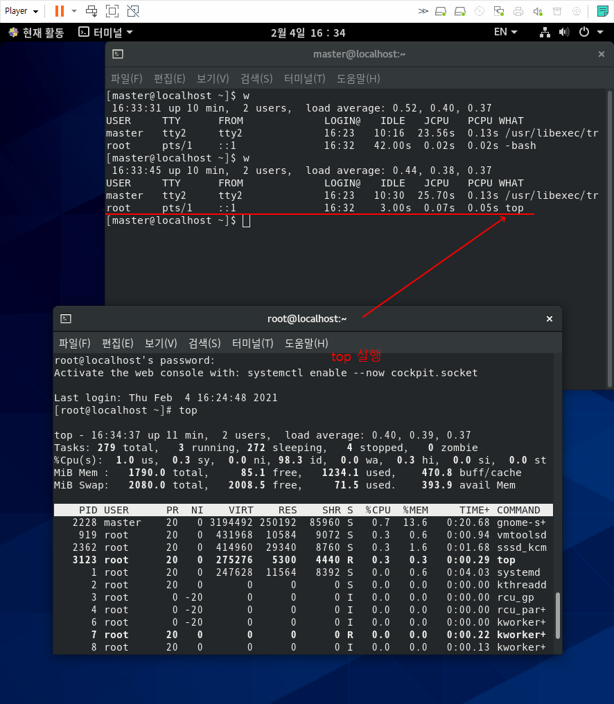 umount / eject : 사용이 완료된 하드웨어장치를 분리시켜주는 명령어