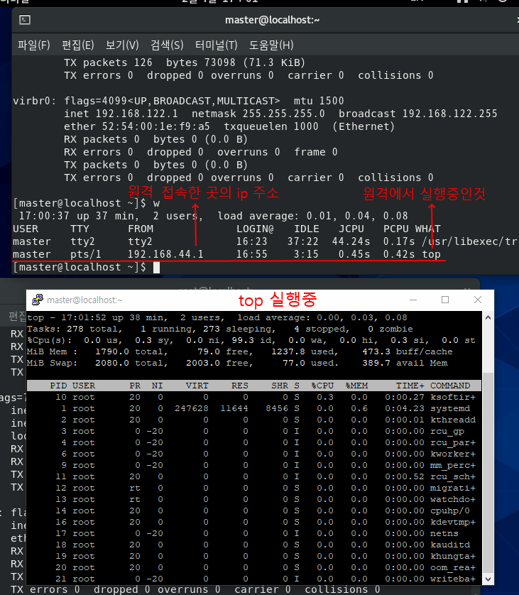 ssh(secure shell) - telnet의 보안성을 보완. 보안성있게 명령어를 통해서 리눅스 관리