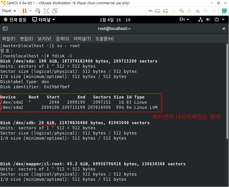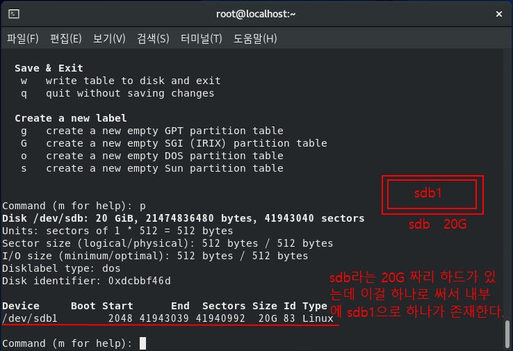 fdisk -l : 현재 모든 디스크의 파티션 설정 현황을 볼 수있음