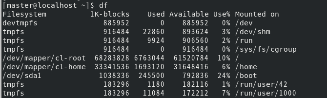 df : 리눅스에서 저장 공간의 사용현황과 여유상황을 확인 (파티션별 저장공간 사용량)